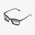 Her black rectangular frame with hints of silver make her an easy accessory while still offering protection with polarised gradient lenses.